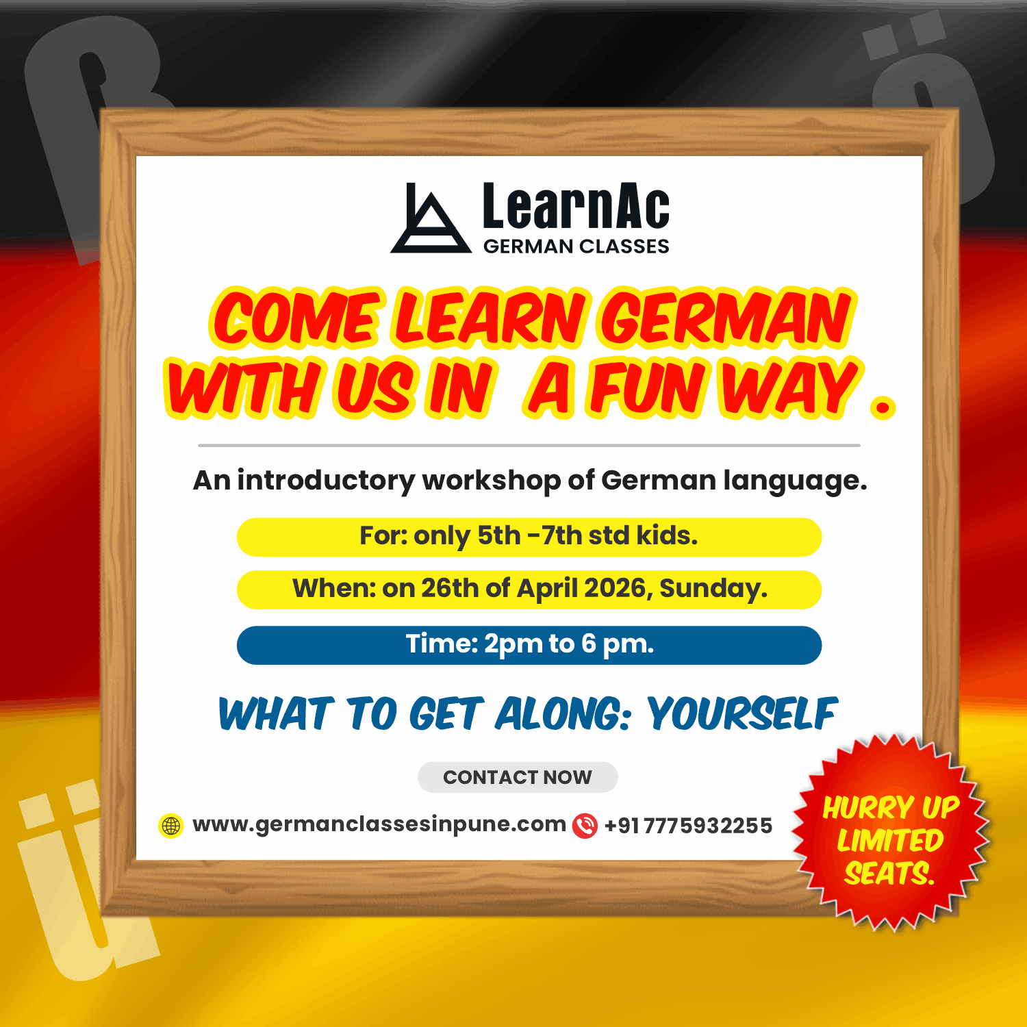 Exciting One-Day German Workshop for Students of 5th to 7th Std!